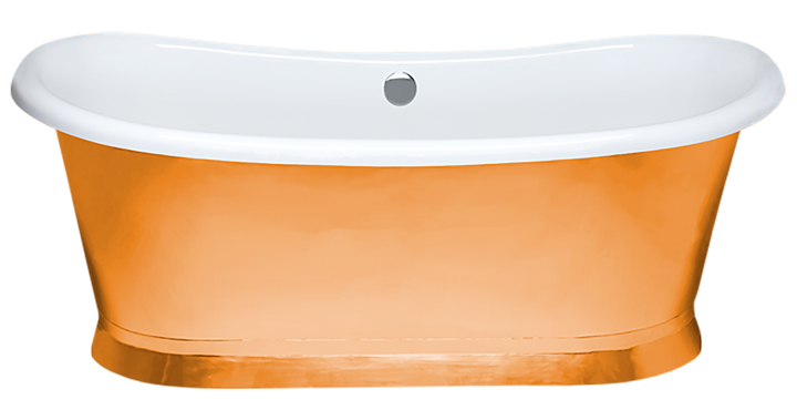 Our modern design of the classic double slipper freestanding bathtub is sure to become the centerpiece of your bathroom with a brass unlacquered copper surround and an insulated acrylic bathing well. With a generously sloped back that supports the body and a gently curved outer rim that exudes luxury, this tub is timelessly styled. Our soaking bathtubs are intended to enhance the natural healing properties of a warm water soak, while gently supporting your body through ergonomic design. We want to help create a relaxing bathing experience allowing for mind and body serenity.